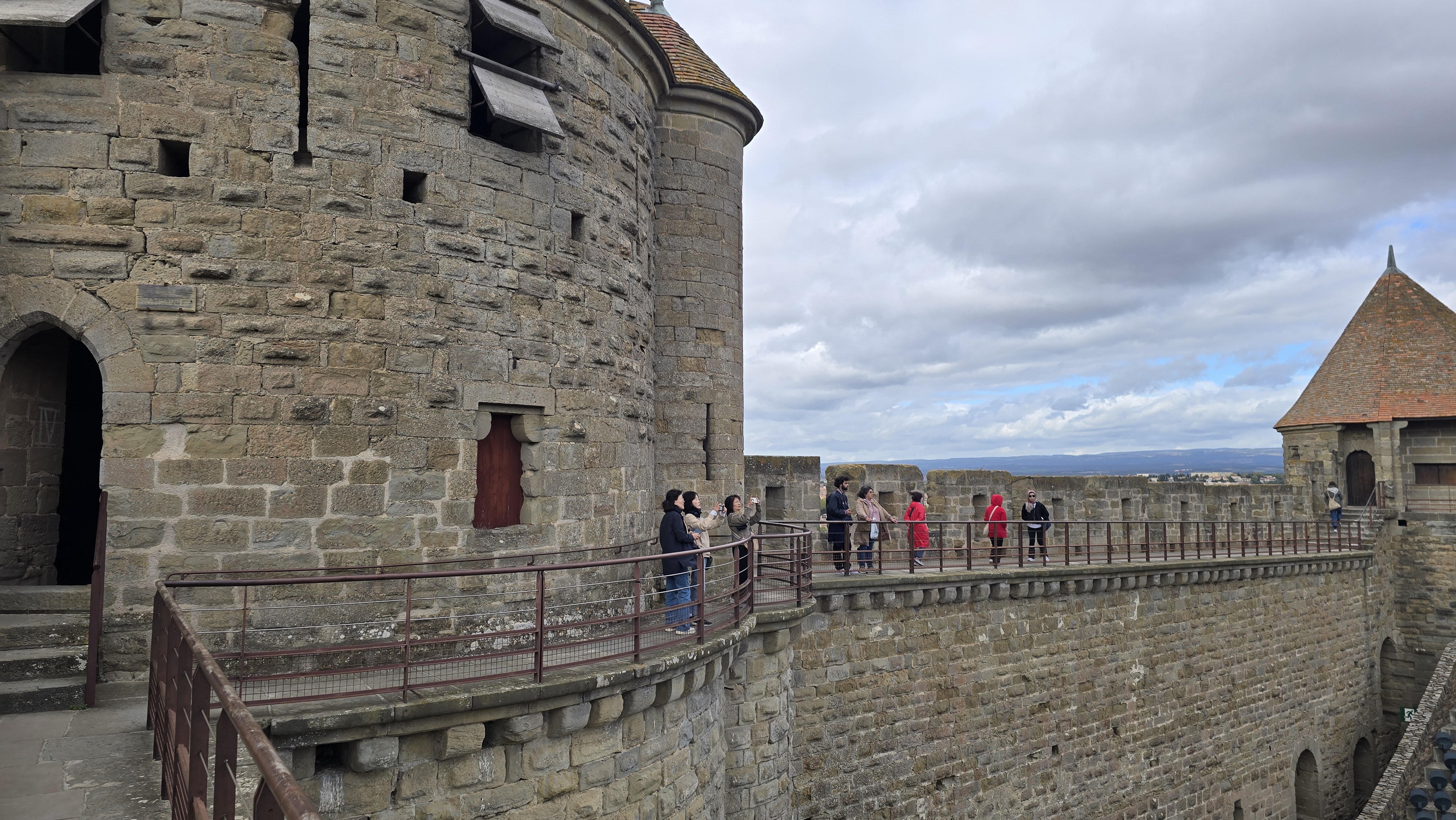 카르카손 성 망루에 올라 멀리 프랑스 남서부 능선을